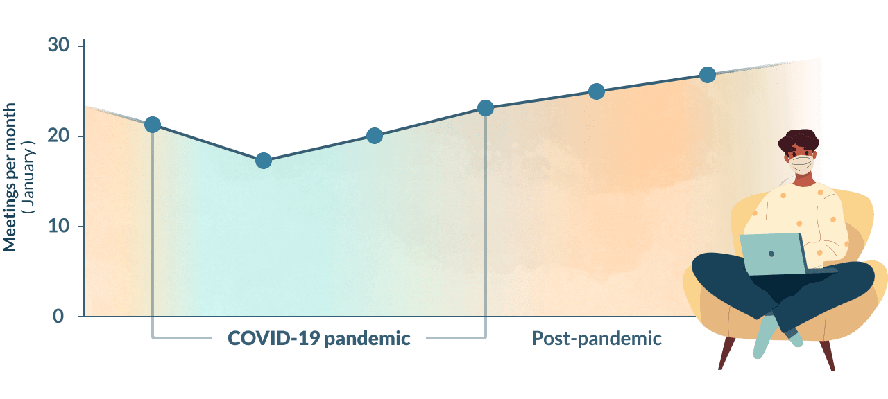 But the data showed us the pandemic actually triggered a decline in the number of meetings that were on our calendars. Turns out, a lot of those meetings could have been an email! And when it was time to mask up, they were.